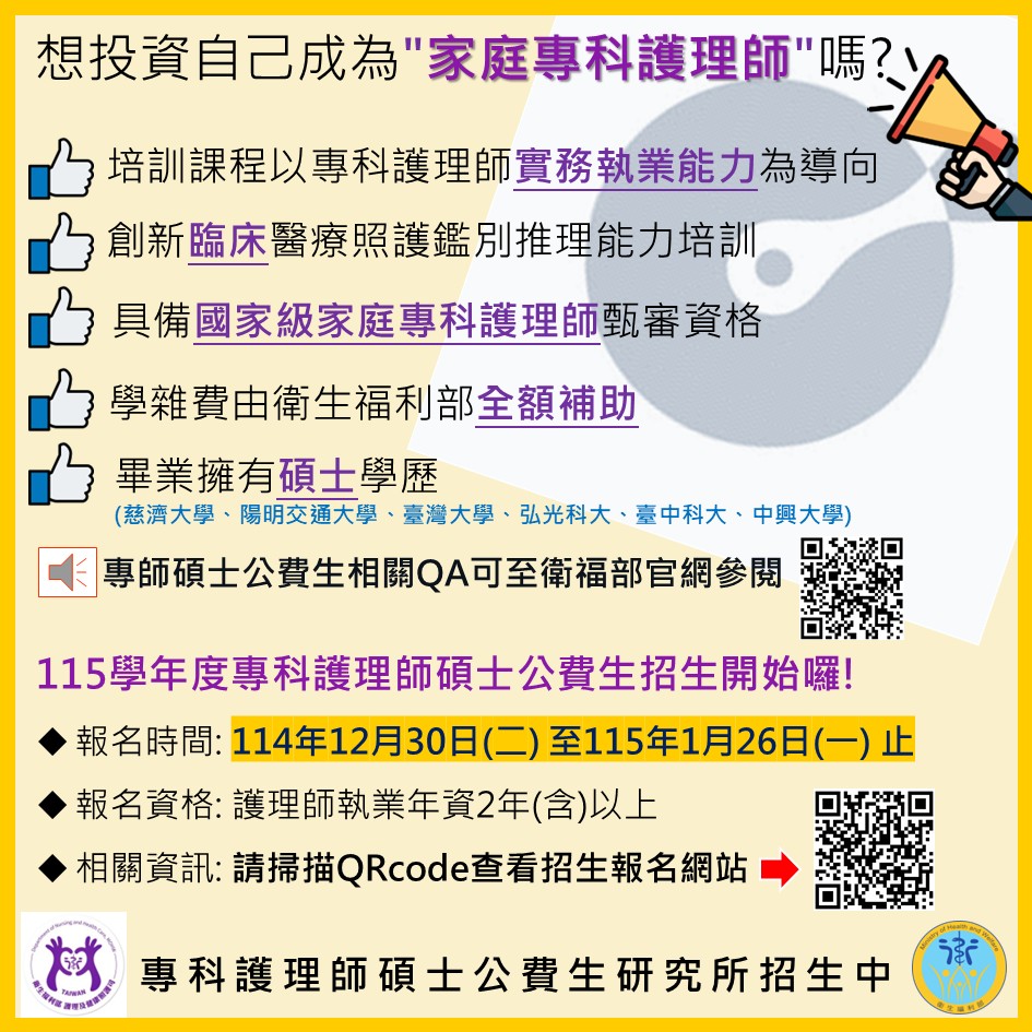 友好訊息📣專科護理師碩士公費生研究所招生中🧑🎓👩🎓🎖️