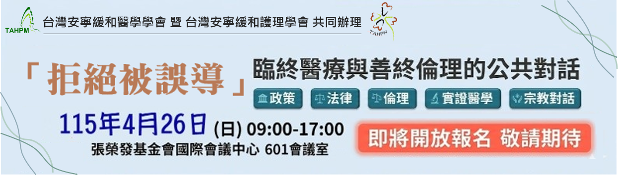 ✨✨敬請期待--台灣安寧緩和醫護兩會共同辦理:拒絕被誤導:臨終醫療與善終倫理的公共對話✨✨