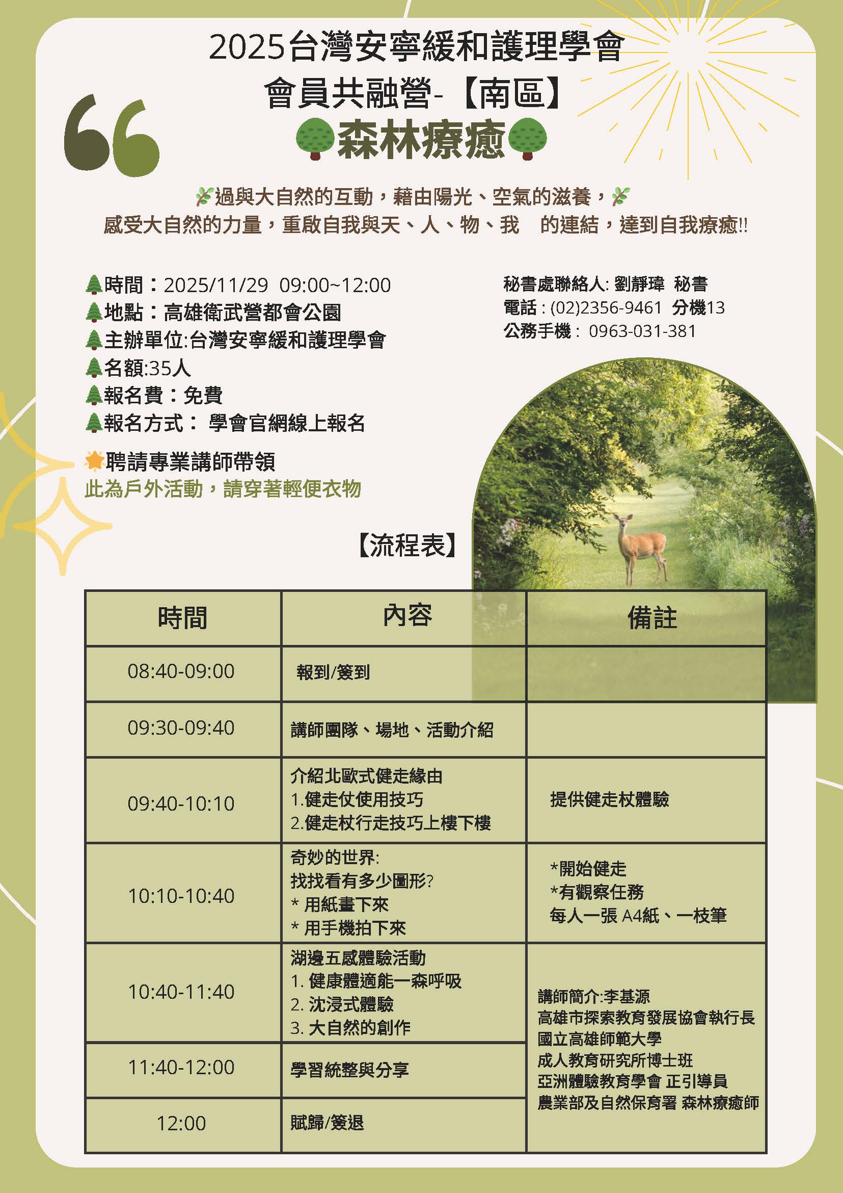 🌳🌳2025台灣安寧緩和護理學會 【南區】-會員共融營🌳🌳