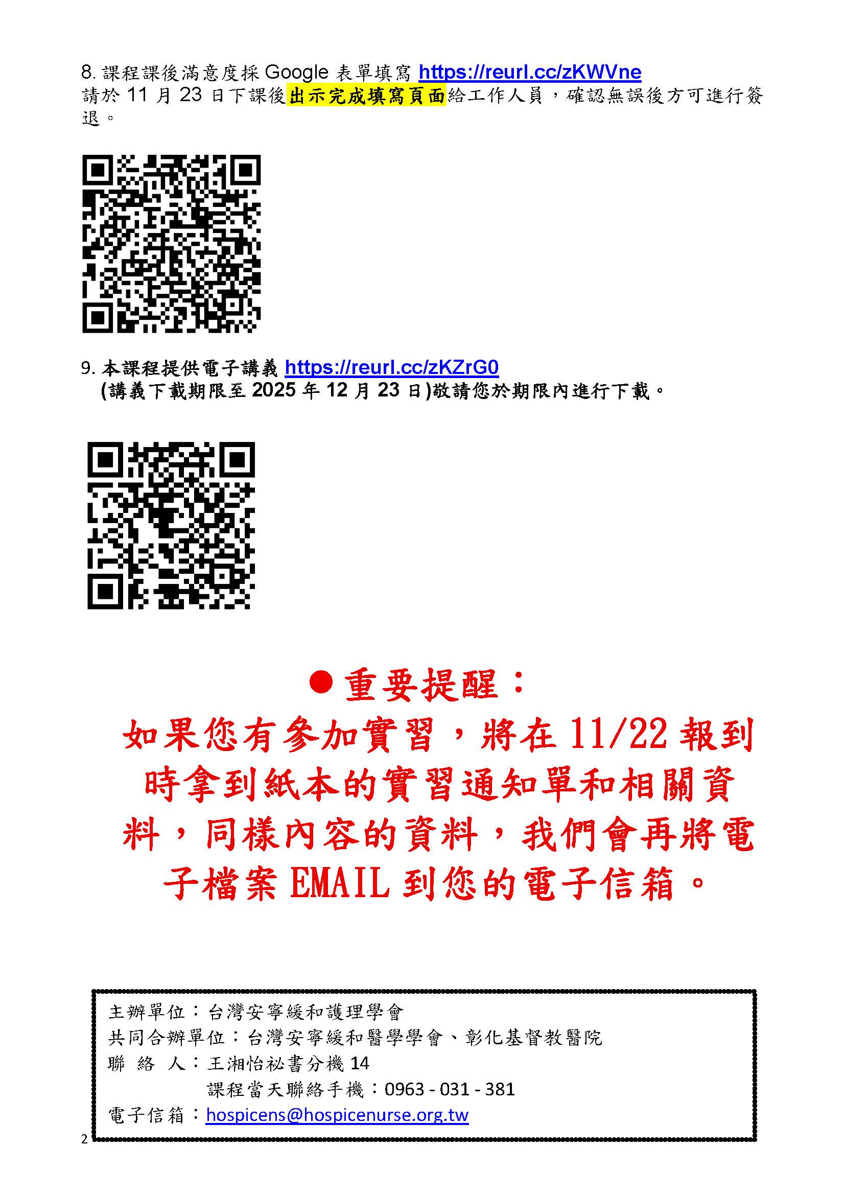 隨信附上11/22-23中區共同進階課程學員通知單(