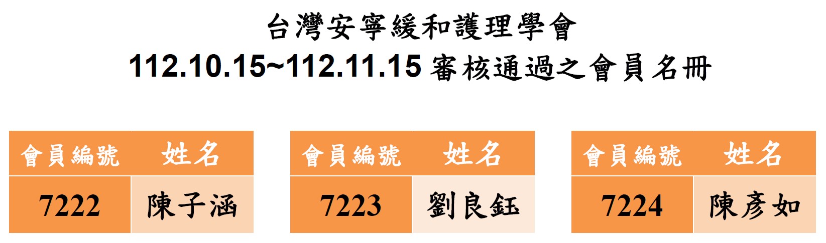 【新入會審核通過名冊】2023.10.15~2023.11.15 一般會員3位